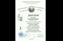 Ученица 9 класса ГАЛИЕВА РЕГИНА награждена дипломом Управления образования г. Казани за ПОБЕДУ в номинации "За волю к победе" конкурса экскурсоводов "Казань - город моложёжи", проводимого в рамках IV городского фестиваля знатаков иностранных языков.