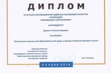 По итогам ХII Республиканского конкурса «Пятьдесят лучших инновационных идей для Республики Татарстан» приказом Министерства образования и науки Республики Татарстан №2372/16 от 12.12.2016 г. педагог МБОУ «Школа №167» Демина Наталья Юрьевна стала победителем в номинации «Инновации в образовании».