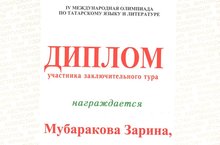 Наша ученица Мубаракова З. награждена дипломом участника заключительного тура IV международной олимпиады по татарскому языку и литературе