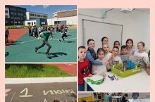 "Детство - это ты и я". В нашем школьном лагере сегодня был очень насыщенный и интересный день. Утром состоялось спортивное мероприятие "Весёлые старты" и творческий конкурс рисунков на асфальте. После обеда отряды посетили мастер-классы, на которых познакомились с кроликом Банни, узнали как за ним ухаживать, сделали фото на память. А также учились делать игрушки из бумаги