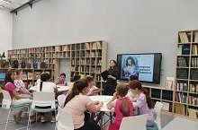 "В волшебной Пушкинской стране..." - именно так назывался тематический день пришкольного лагеря сегодня. В день рождения великого русского поэта А.С.Пушкина ребята поучаствовали в викторине на знание творчества и биографии Александра Сергеевича, которую организовала библиотекарь гимназии Гулина Шафхатовна. После обеда по мотивам сказок отряды подготовили выступления и читали стихотворения