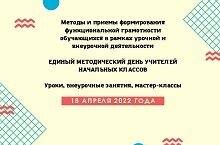 18 апреля 2022 года стартовал традиционный Единый методический день. Первыми открылись учителя начальных классов. Заявленная тема "Методы и приемы формирования функциональной грамотности обучающихся в рамках урочной и внеурочной деятельности". Учителя начальных классов Гафурова А.С., Губаева Э. Р., Сагдеева Р.М. показали открытые уроки; Габдулвалиева Р.Н., Гумерова Э.Х., Гущина Т.Н., Гаязова Э. Ф., Мустафина А. В., Мусина И.Ф. провели занятия внеурочной деятельности; Ямалутдинова Э.Р. показала мастер-классы. Единый методический день завершился заседанием методического объединения учителей начальных классов, где были подведены итоги дня. День сложился интересным, насыщенным и продуктивным. Благодарим всех коллег!