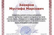 В рамках Международного мастер-класса учителей родных языков, в том числе русского, проводимого Федеральным институтом развития образования, прошел заочный этап конкурса творчества для обучающихся. Закиров Мустафа, ученик 3а класса, в очередной раз стал победителем конкурса. Пожелаем нашему гимназисту, самому активному участнику творческих конкурсов, удачи на очном этапе! Пусть на пути к успеху Мустафе всегда светит счастливая звезда!