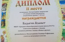 Поздравляем учащегося 1 «Г» класса Бадыгина Азамата, ставшего дипломантом II степени республиканского конкурса творческих работ «Сказка мудростью богата» в номинации «Литературное творчество» . Желаем Азамату дальнейших литературных побед!