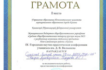 Поздравляем победителей и призеров IX научно-практической конференции учащихся школ г.Казани имени Джавдата Валеевича Вилькеева (Вилькеевские чтения) в номинации «Юный исследователь»: Суханова Ярослава - 1 место, Шайдуллину Альбину. – 2 место, Ермилова Илью. – 3 место (научный руководитель Гафурова А.С.); в номинации «Химия»: Кутузову Екатерину, ученицу 10а класс (научный руководитель Нуриева З.З.); в номинации «Татарская литература»: Алееву Азалию, ученицу 7а класса (научные руководители Габдулвалиева Р.Н., Гафарова Г.Г.).