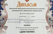 2 нче март көнне Казан шәһәренең Вахитов районында урнашкан 131 нче лицейда "Дни науки" дип исемләнгән фәнни- гамәли конференциясе булып үтте. Бу конференциядә мәктәбебез укучылары да катнашып, үзләренең белемнәрен күрсәттеләр. Гыйлманова Әлфинә призер дипломы (җитәкчеләре: Габделвәлиева Р. Н., Гафарова Г.Г.), Алеева Алина (җитәкчеләре:Гафарова Г.Г., Габделвәлиева Р. Н.), Низамов Инсаф (җитәкчесе Ахтямова Г.М.) сертификатлар белән бүләкләнделәр. Аларга алга таба да уңышлар телибез!