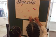 В нашей школе проходит акция "Подари свою улыбку". в фойе школы ребята могут нарисовать улыбки и веселые лица как фломастерами, так и мелом... -