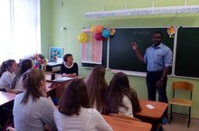 Сегодня в нашей школе прошла необычная встреча. Наши старшеклассники имели уникальную возможность побеседовать на английском языке с преподавателем из Америки. Чарльз Эмине, ученый, преподаватель факультета биологии КФУ, рассказал, как он попал в Россию, и как тяжело ему давался русский язык. Забыв о страхе сделать ошибку, ребята задали много вопросов гостю о семье, Родине, предпочтениях в еде. По мнению самого гостя, встреча прошла очень живо и душевно. Напоследок по традиции гостеприимства ребята подарили нашему гостю чак-чак и выразили надежду встретиться еще раз.