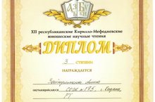 Поздравляем Ахунову Диляру, ученицу 9а класса (педагог Клячина Л.С.) с дипломом 2 степени и Зайнуллину Алию, ученицу 4б класса (педагог Гафурова А. С.) с дипломом 3 степени в Республиканских Кирилло-Мефодиевских юношеских научных чтениях. С каждым годом Республиканские Кирилло-Мефодиевские юношеские научные чтения приобретают все более глубокое звучание, представляют детям возможность прикоснуться к народным традициям и культуре. Участникам чтений и их руководителям были вручены ценные подарки. В сборнике материалов научно-исследовательских и творческих работ обучающихся общеобразовательных организаций Республики Татарстан представлены работы девятиклассников Степановой Виктории, Ахуновой Диляры и Гильмутдиновой Дины. Мы гордимся вами, так держать!