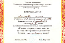 Гильмутдинова Дина предоставила вниманию слушателей экскурсию "Мистические места Казани" и заняла I место (руководитель Исмагилова Л.Я.)