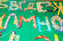 Каждый день первоклассники узнают новое о речи. Познакомились с пиктограммой –письмом рисунками. Познакомились с письменной речью, алфавитом. И захотелось им создать свой алфавит. Задумка превратилась в проект «Наша речь». («Алфавит из зерен» – работа Сайфуллиной Алины, ученицы 1б класса)
