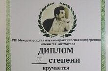 Призер Vlll Международной научно - практической конференции имени Ч.Т.Айтматова 11.12.2022