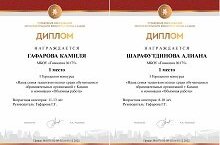 По итогам I городского конкурса "Наша семья талантами полна" среди обучающихся образовательных организаций г. Казани Гафарова Камиля, ученица 7б класса и Шарафутдинова Алиана, ученица 3б класса заняли 1 место. Поздравляем и желаем успехов! Благодарим учителя родного языка и литературы Гафарову Гульнару Галимхановну