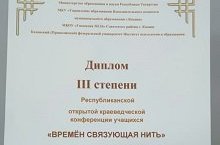 Призер Республиканской краеведческой конференции школьников "Времен свящующая нить" 10.12.2022