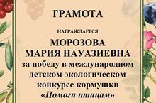 Ежегодно музей-усадьба «Ясная Поляна» имени Л.Н. Толстого проводит международный экологический конкурс «Помоги птицам!». Это для учащихся объединения «Естествознание с основами экологии» (рук. Шарипова Р.А.) отличная возможность помочь птицам в голодное время года и заодно поучаствовать в таком престижном конкурсе. В этом году в конкурсе на лучшую кормушку «Помоги птицам!» жюри оценило 290 работ от 285 юных участников со всей России, стран ближнего и дальнего зарубежья. В номинации «Самая креативная (оригинальная) кормушка одержала победу Морозова Мария.