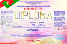 Спектакль театра «Радуга» «И каплю каждую ценить», успешно показанный в рамках празднования «Дня воды», заслужил диплом лауреата II степени Международного конкурса «LISBON STARS», в жюри которого работали специалисты из Португалии, Испании, Италии и Нидерландов. «…Прекрасные дети! Большое достижение, что они в таком маленьком возрасте смогли выучить столько текста. Выступить на сцене и при этом чувствовать себя абсолютно спокойно и уверенно. Молодцы!..» - из отзыва членов экспертного совета. Поздравляем лауреатов и желаем дальнейших успехов в учёбе и творчестве!