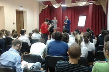 29.11.2016г. в рамках цикла бесед «Встречи с интересными людьми» прошла встреча со слабослышащим миллионером Кириллом Дорониным. Кирилл Доронин рассказал ребятам свою историю успеха и ответил на многочисленные вопросы ребят. В конце встречи выразил свое желание встретиться с родителями учащихся школы.