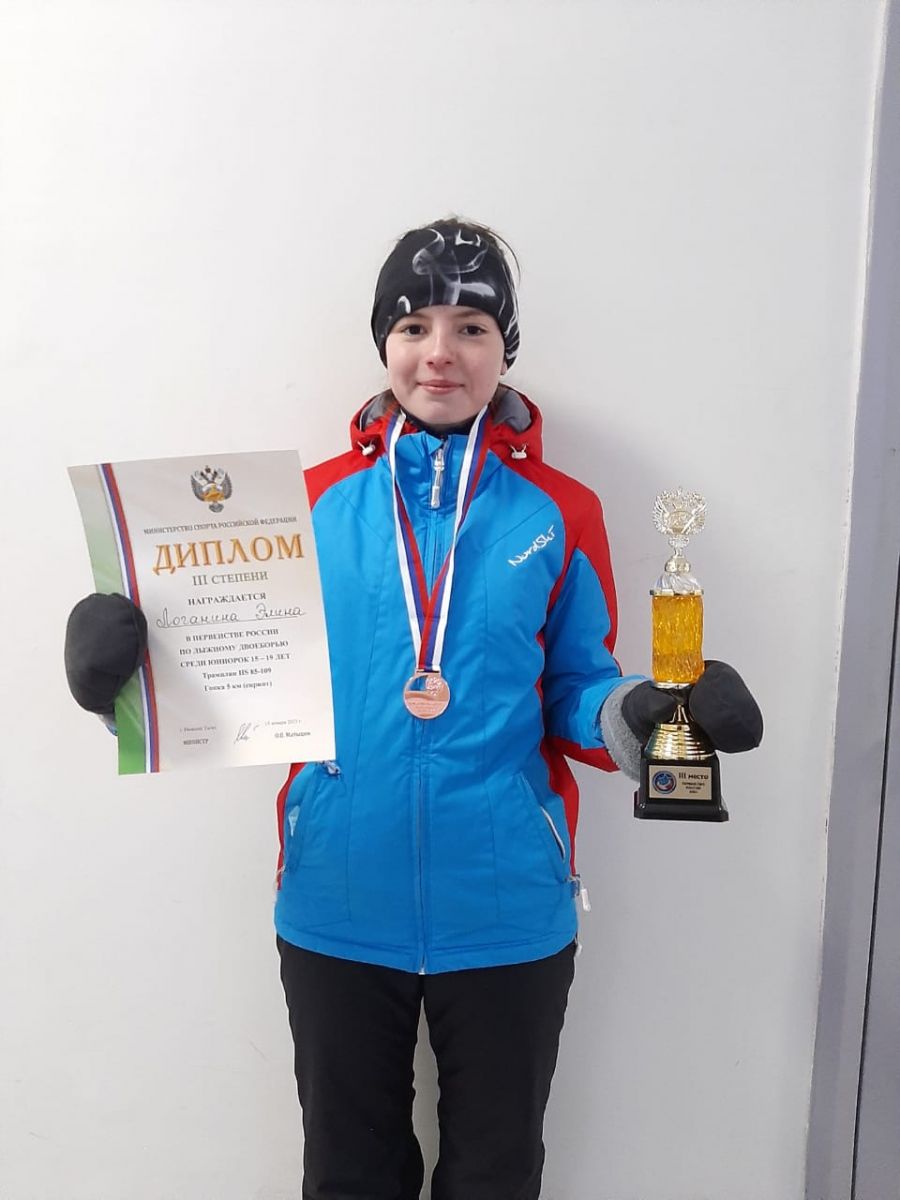 Логанина Элина - дважды призер первенства РФ по лыжному двоеборью