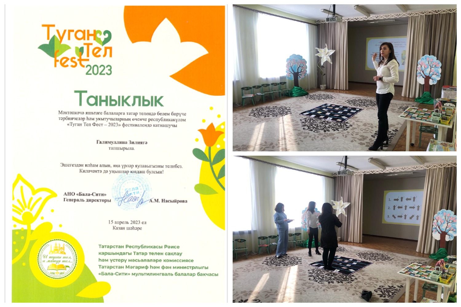 Воспитатель по обучению детей татарскому языку приняла участие по распространению педагогического опыта в фестивале "Туган Тел Фест-2023". Провела мастер-класс используя нейропсихологический ковёр, как средство обучения детей татарскому языку. -
