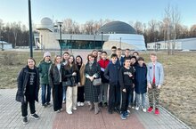 7Б класс благополучно съездил на экскурсию в Казанский Планетарий «Тайны звездного неба», набрались много позитива, подняли себе настроение для завершения 4 четверти. 7Б умеет и учиться и отдыхать и развлекаться и при всем этом у них всегда присутствует любознательность и умение общаться в коллективе. Слушали экскурсовода в идеальной тишине с открытыми ртами и горящими глазами увидев и услышав новую информацию.