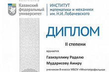 Поздравляем учеников 8В класса Газизуллина Раделя и Мударисова Амира с дипломом II степени в номинации "Замечательные люди моей малой родины" VI Конкурса краеведческих математических задач для школников 2021-2022 учебного года!