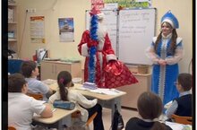 Дед Мороз, Снегурочка и их помощники поздравили всех учеников начальной школы с наступающими праздниками, вручив им долгожданные подарки.