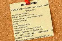 Адрес: г. Казань, ул. Тулпар, д.2; По всем вопросам обращаться по телефону: 598-06-96; Эл.почта для резюме: sch181kzn@mail.ru