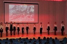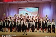 Фестиваль инсценированной патриотической песни. Ученики пели песни, посвященные Великой Отечественной войне, России на русском и на татарском языках.