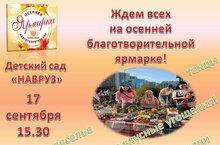 Приглашаем Вас 17 сентября в 15.30 на осеннюю благотворительную ярмарку "От сердца к сердцу!"