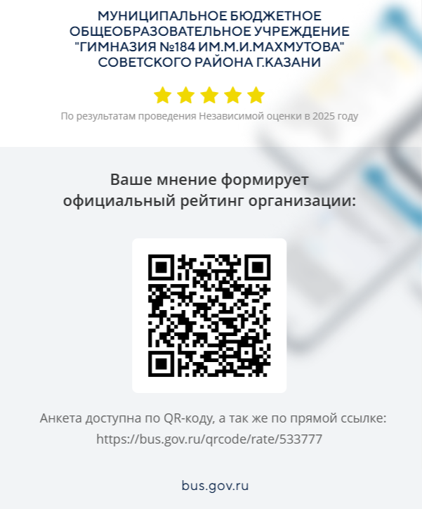 Муниципальное бюджетное общеобразовательное учреждение «Гимназия №184 им.М.И.Махмутова» Советского района г.Казани
