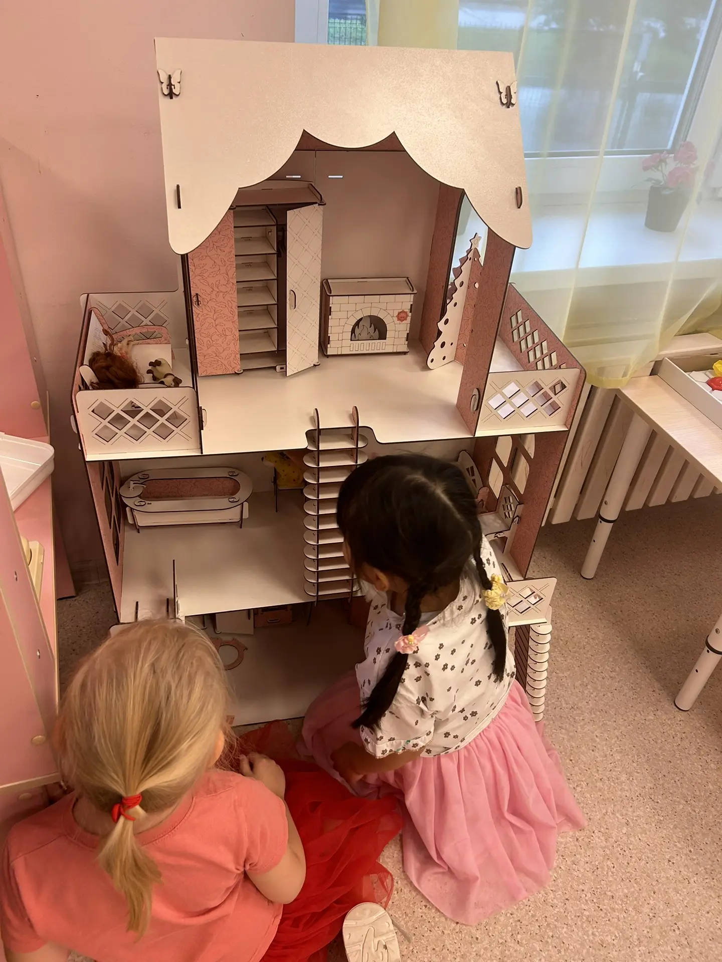 Мы играем целый день, Целый день играть не лень! Кто зайдёт, будет рад, — Вот какой наш детский сад!