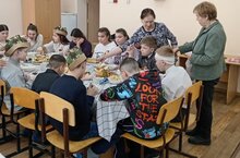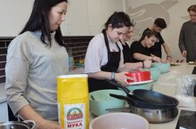 20.03.2025 г. совместно с волонтёрами компании "Терра" и детьми нашей школы-интерната был проведён мастер-класс по приготовлению салата "Оливье" и творожного десерта "Сырники". Перед началом работы с детьми был проведён инструктаж по технике безопасности при приготовлении пищи и технология приготовления данных блюд. Также с детьми повторили правила пользования острыми предметами. Дети сами соединяли ингредиенты: творог, муку, сахар и яйца. Девочки сами формировали нужную форму и каждый сырник обваливали с двух сторон в муке. Затем обжарили сырники на хорошо нагретой сковороде с маслом до золотистой корочки. Тем временам мальчики готовили салат. Перед тем, как сделать салат и перемешать его с майонезом, ребята заготавливали ингредиенты для салата: нарезали курицу копченую, картофель отварной, огурцы солёные, лук, отварные яйца и морковь. Блюда получились очень вкусные, всем понравилось, дети остались довольны.