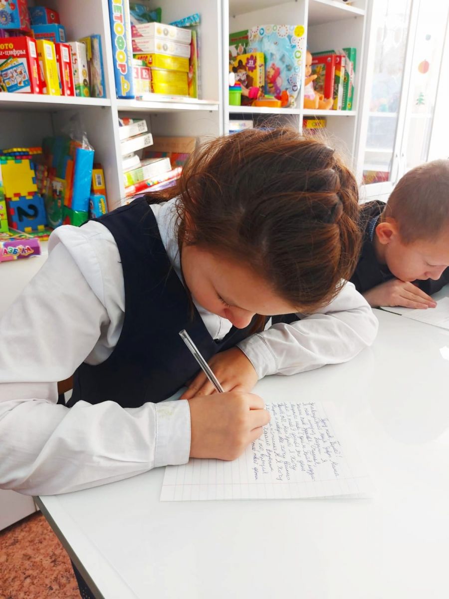 Сегодня в нашей школе учащиеся приняли участие во Всероссийской военно-патриотической акции «Пишу тебе, Герой!», в рамках которой ученики написали письма на фронт для участников СВО. Ребята выразили свою поддержку и искреннюю благодарность, за столь нелегкий, но важный труд. Пожелали здоровья и скорейшего возвращения домой к семьям.