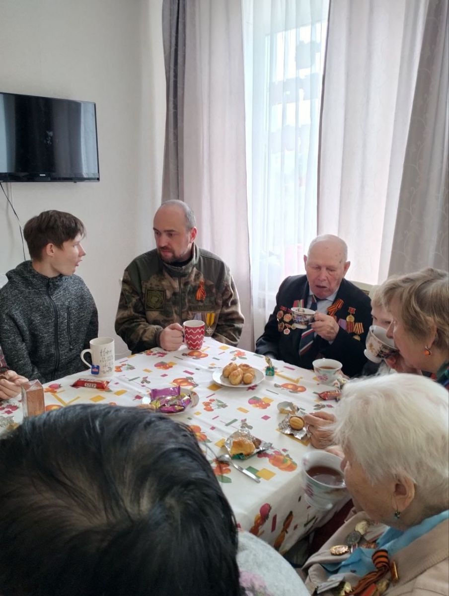 Почетными гостями на концерте были ветераны тыла, дети войны, участник СВО, председатель Совета ветеранов ОАО «КВЗ» Тамара Георгиевна Драгайцева. Ребята вручили им цветы в знак благодарности за подвиги и защиту нашей Родины. После концерта состоялся круглый стол гостей с воспитанниками школы. За чашкой чая ребята задавали вопросы и гости с удовольствием отвечали им, рассказывая о событиях своей жизни. Встреча прошла в душевной и теплой обстановке.