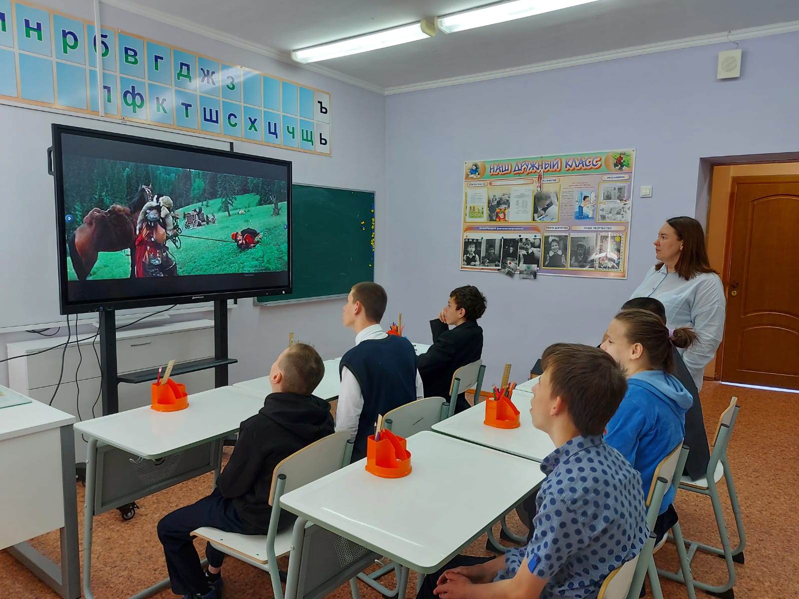 В рамках кинолектория «День славянской письменности» учащиеся 8 класса просмотрели художественный фильм «Илья Муромец» классический фильм с элементами точной передачи быта и стиля жизни людей этой эпохи. Илья Муромец — один из главных героев древнерусского былинного эпоса, богатырь, воплощающий общий народный идеал героя-воина.
