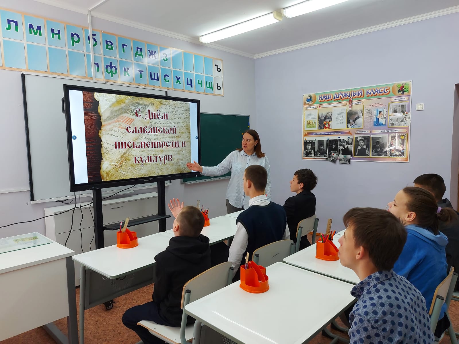 В преддверии это праздника в нашей школе прошли познавательные мероприятия. В ходе которых ребята узнали о великих просветителях Кирилле и Мефодии. Как и когда появились буквы, кто такие Кирилл и Мефодий, как создавалась русская азбука.