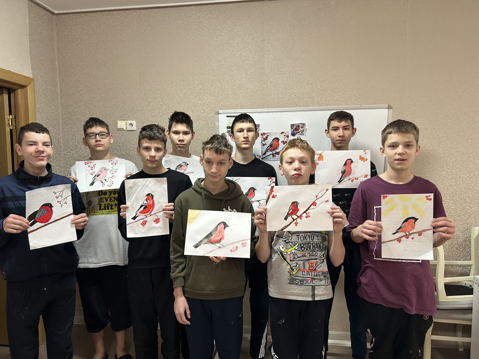 Опубликовано: 24.01.202624.01.26 г. в школе-интернате №11 состоялось занятие по изодеятельности: "Снегирь". Снегирь - символ зимы. Его рисование создает радостное, праздничное настроение. Занятие прошло вдохновенно, и у каждого юного художника получился свой неповторимый и яркий снегирь! Это не просто рисунок, а частичка тепла и красоты, созданная их руками.