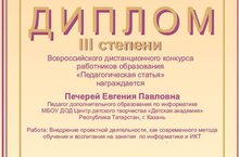 Всероссийский конкурс работников образования "Педагогическая статья" 18.12.2014