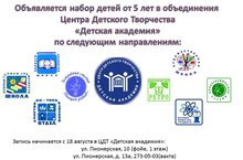 ЦДТ "Детская академия" объявляет набор детей от 5 лет в объединения по следующим направлениям: