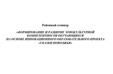 «Формирование и развитие этнокультурной компетентности обучающихся на основе инновационного образовательного проекта «Сказки Поволжья» 27.10.2021