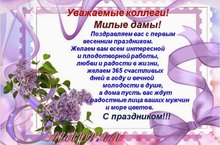 Сегодня хотим поздравить прекрасную половину нашего коллектива с 8 Марта и пожелать весны в душе, солнца, тепла, цветов, улыбок, радости, добра. Пусть ваша жизнь будет наполнена любовью, счастьем, приятными сюрпризами и добрыми людьми.