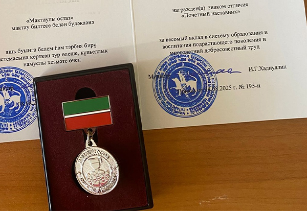 На педагогическом совете 6 октября 2025 г. "За весомый вклад в систему образования и воспитания подрастающего поколения и многолетний добросовестный труд" от Министерства образования и науки Республики Татарстан были награждены знаком отличия "Почетный наставник" педагог Мифтахутдинова Камиля Камилевна и педагог Сальникова Валентина Ивановна. Поздравляем с наградой и желаем дальнейших успехов в педагогическом деле!