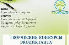 Оргкомитет Всероссийского экологического диктанта объявил о запуске сразу трех творческих конкурсов – на лучший экологический видеоурок, слоган и вопрос для Экодиктанта. Авторы всех конкурсных работ получат сертификаты участников, а победители и призеры – дипломы и памятные подарки.