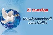 Международный день мира — отмечается 21 сентября с 2002 года. Был учреждён на 36-й сессии Генеральной Ассамблеи ООН (Резолюция № A/RES/36/67 от 30 ноября 1981 года). Вначале праздник отмечался в третий вторник сентября — в день открытия ежегодной сессии Генеральной Ассамблеи ООН. Решение о праздновании Международного дня мира 21 сентября было принято на 55-й сессии Генеральной Ассамблеи ООН (специальная резолюция № A/RES/55/282 от 28 сентября 2001 года).