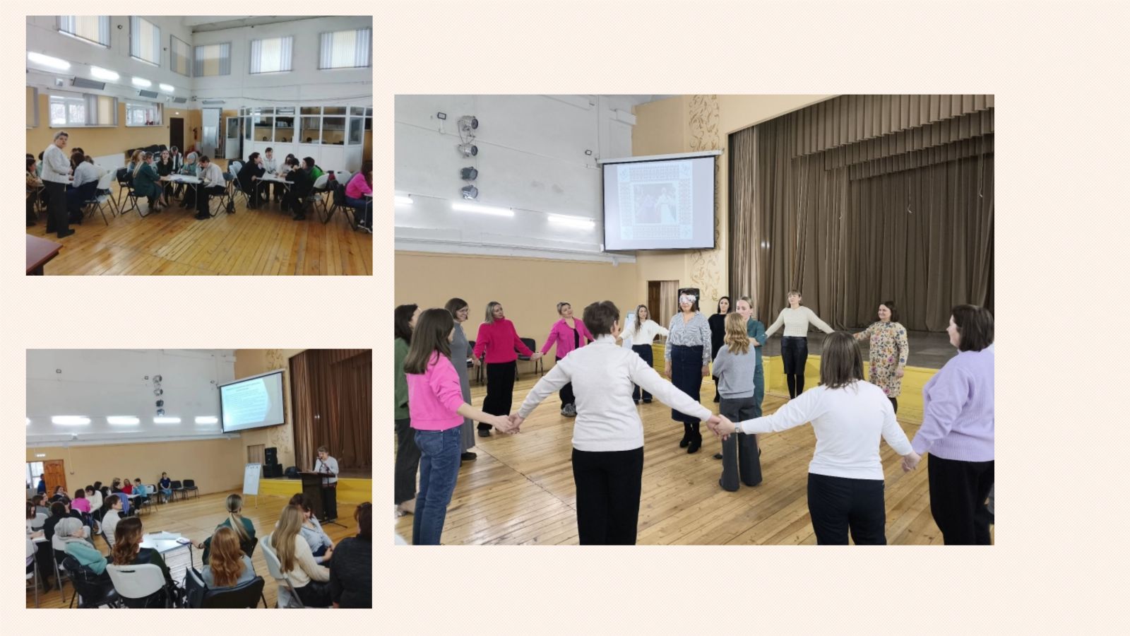 В практической части семинара педагоги попрактиковались в составлении анализа занятия, смогли поучаствовать во фрагменте занятия на тему "Русская вечерка", представленном педагогом Кунгурцевой Е.В.