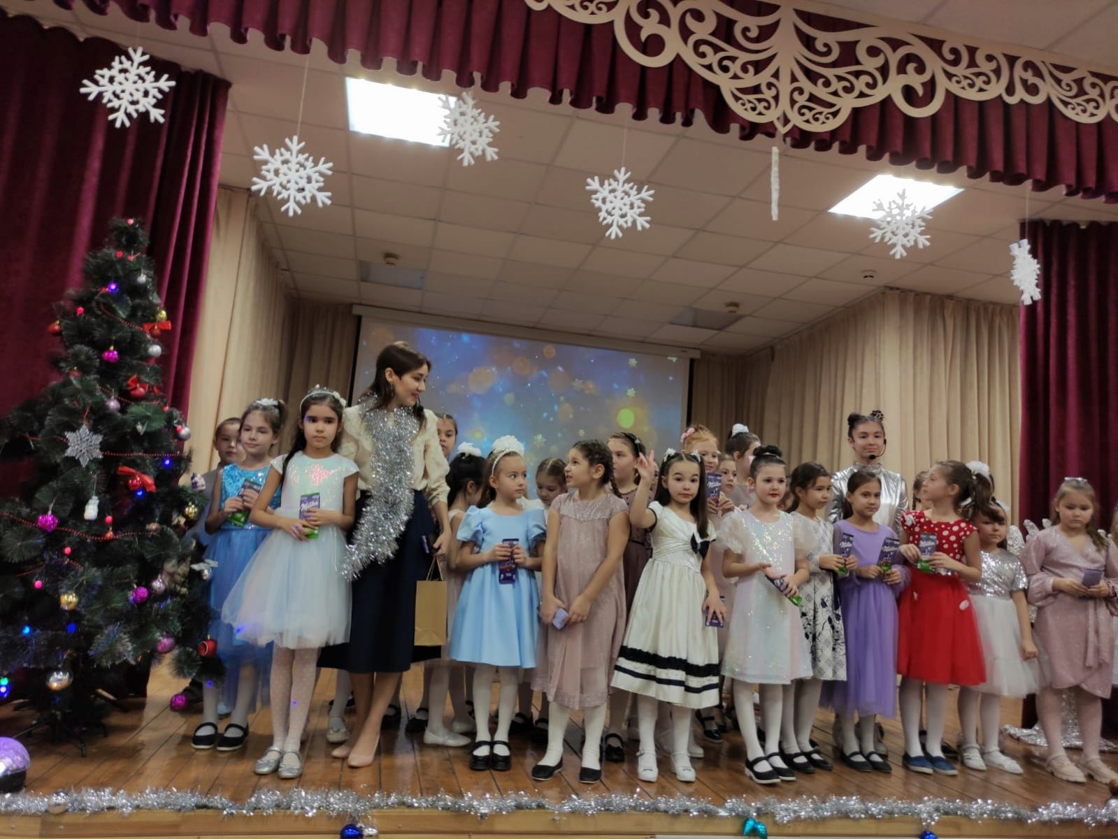 24 декабря состоялся отчётный концерт вокального объединения "Җәүһәр" и хореографического коллектива "Арлекино". Руководитель вокального ансамбля Хамидуллина Гульчачак Зиннуровна