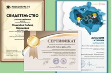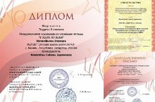Диплом 1 степени в Всероссийском творческом конкурсе «Конкурсплюс»;