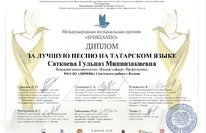 Педагог нашей школы Саткоева Гульназ Миннизакиевна стала лауреатом 1 степени на Международной музыкальной премии "Sforzando" и отмечена специальным дипломом за «Лучшее исполнение песни на татарском языке». Поздравляем с победой!