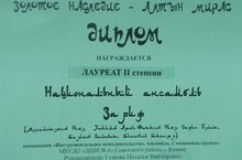 В конце марта - начале апреля III Открытый Всероссийский фестиваль детского и юношеского творчества "Золотое наследие-Алтын Мирас" принимал заявки с видео-материалом. И вот,на днях,стали известны результаты обсуждения жюри конкурсных материалов. Ансамбль "Зариф" - лауреат II степени (руководитель Гужова Н.В.).