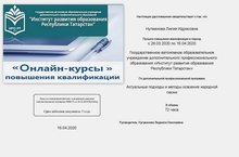 16 апреля преподаватель вокала Нугманова Лилия Идрисовна успешно завершила 72- часовые курсы повышения квалификации в Государственном автономном образовательном учреждении дополнительного профессионального образования "Институт развития образования Республики Татарстан" на тему «Актуальные подходы и методы освоения народной песни».